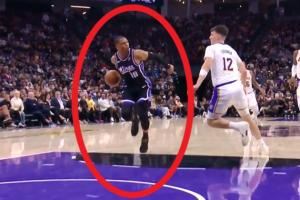装到了!威少快攻变向晃飞拉拉维亚甚至还看其一眼再轻松上篮命中