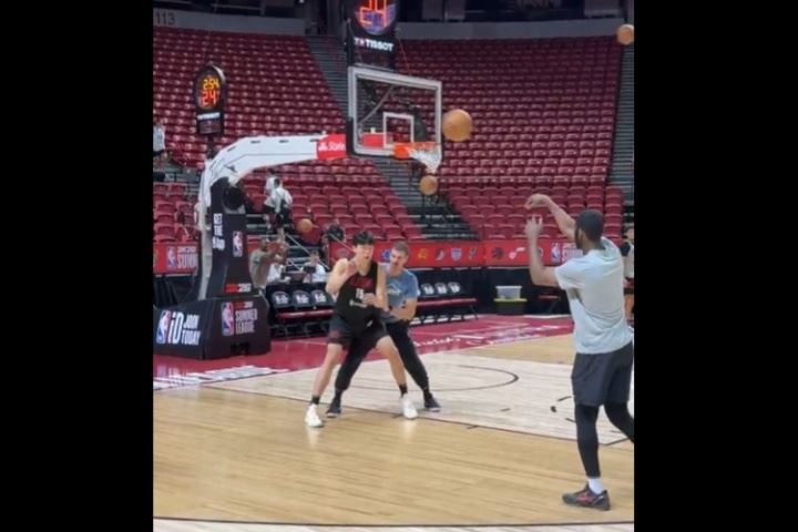 链接>>>右侧45度NBA三分线5中4!杨瀚森在斯普利特陪同下练外线投篮