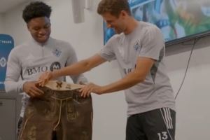 已经成温哥华活宝啦!穆勒给为自己让出号码的队友送皮裤