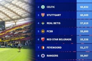 本赛季欧联杯球队主场最大容量榜单:罗马居首,凯尔特人次席
