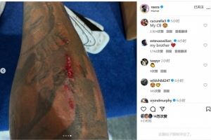 里斯-詹姆斯赛后更新社媒动态,晒出比赛照片,以及腿上的伤口。